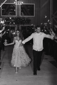 Joe and Kennedy got married at the Rustic Barn at Half Moon, decorating the space extravagantly with greenery and white florals by Sol Cruz. Their cake, by Imaginary Cakes, was perfected with the addition of their two dogs, Gigi and Apple!